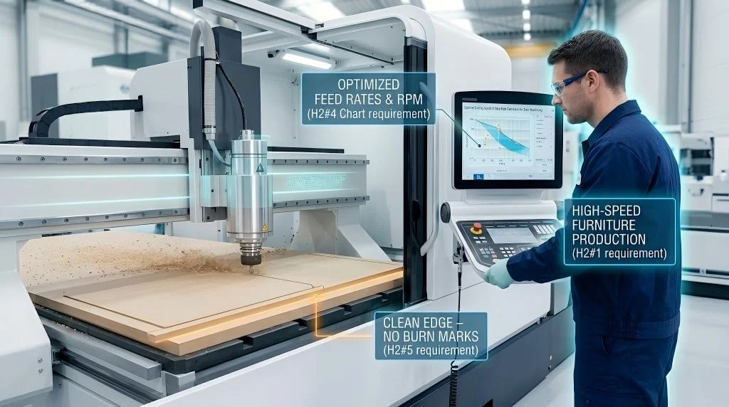 Cutting speed (measured in m/min) dictates the thermal generation at the shear zone. To translate the manufacturer’s recommended cutting speed into a usable machine parameter (RPM), use the formula: n = (vc * 1000) / (π * Dc)