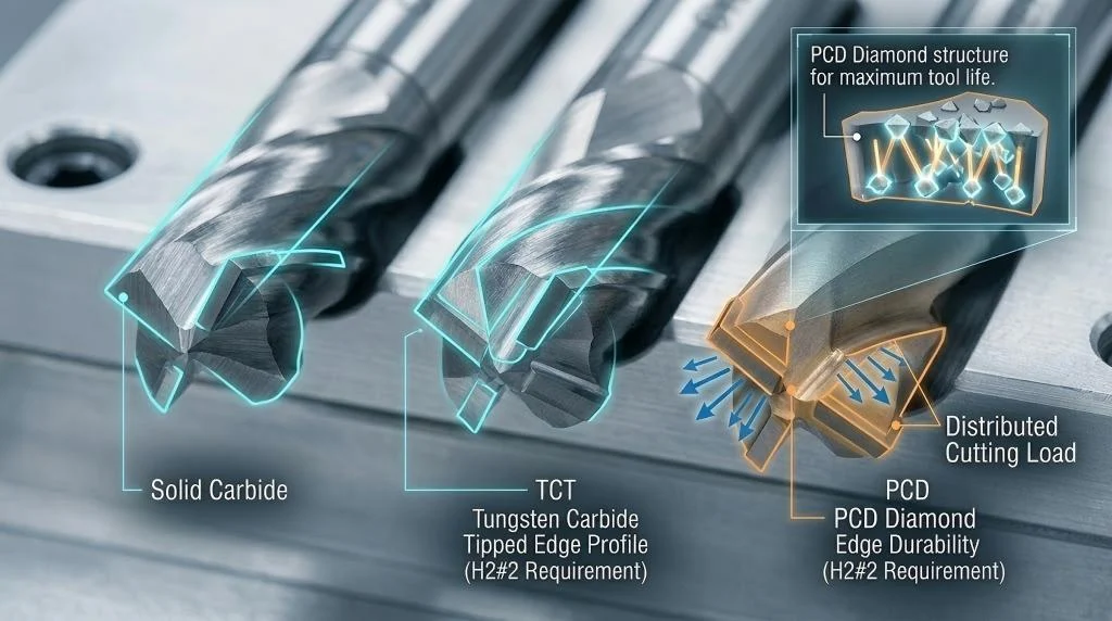 The core substrate consists of hard Tungsten Carbide (WC) particles held together by a softer, metallic Cobalt (Co) binder. The ratio of these two elements, alongside the grain size of the tungsten carbide, dictates the mechanical properties of the tool: